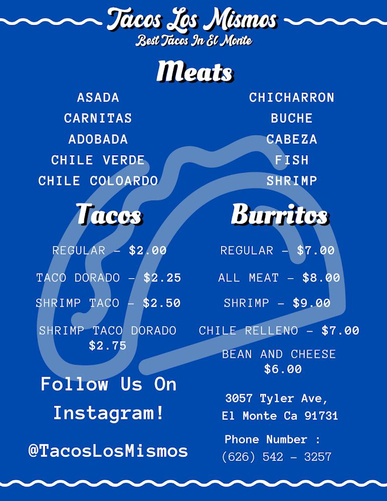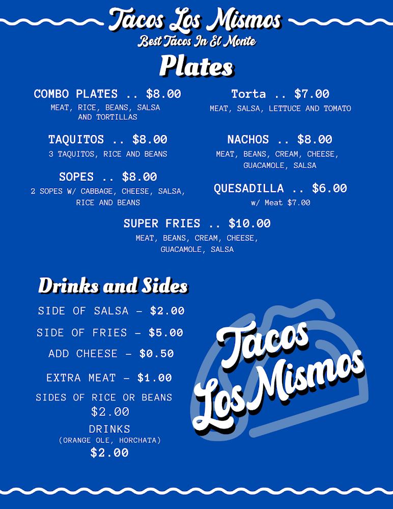 Welcome to Tacos Los Mismos, your go-to spot for authentic Mexican cuisine in El Monte! Family-owned and operated, we take pride in serving up bold flavors and generous portions at affordable prices. From our renowned Red Asada Tacos to our delectable Super Fries, every dish is crafted with passion and care. Our loyal customers are the heartbeat of our community, and we are grateful for their unwavering support. Whether you're dining in, taking out, or enjoying our inviting terrace, we guarantee satisfaction in every bite. Stop by and discover why Tacos Los Mismos is celebrated as the best in town!